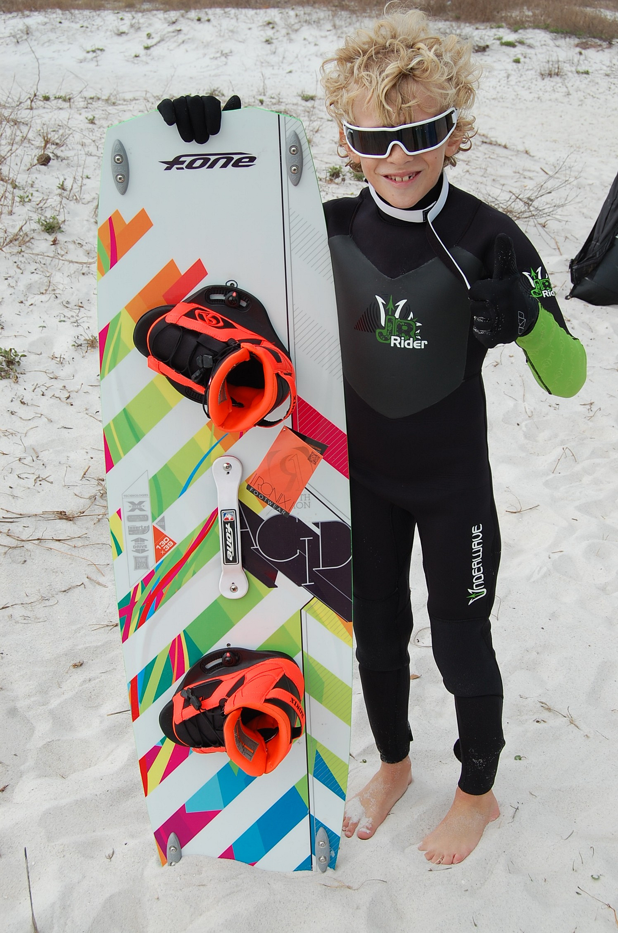 F-One in America is stoked to have young grom Evan Drye joining the team. Evan is quite young but already very passionate about kiteboarding and wants to join the F-One Next Generation team (currently in Tarifa). Evan is riding the latest F-One gear (Bandit kite and Next Generation ACID twin tip). Plus Underwave wetsuit. He is all set ! We will meet him and his very supportive dad Kevin at the next Kite Expo in Pismo Beach April 11-13.
