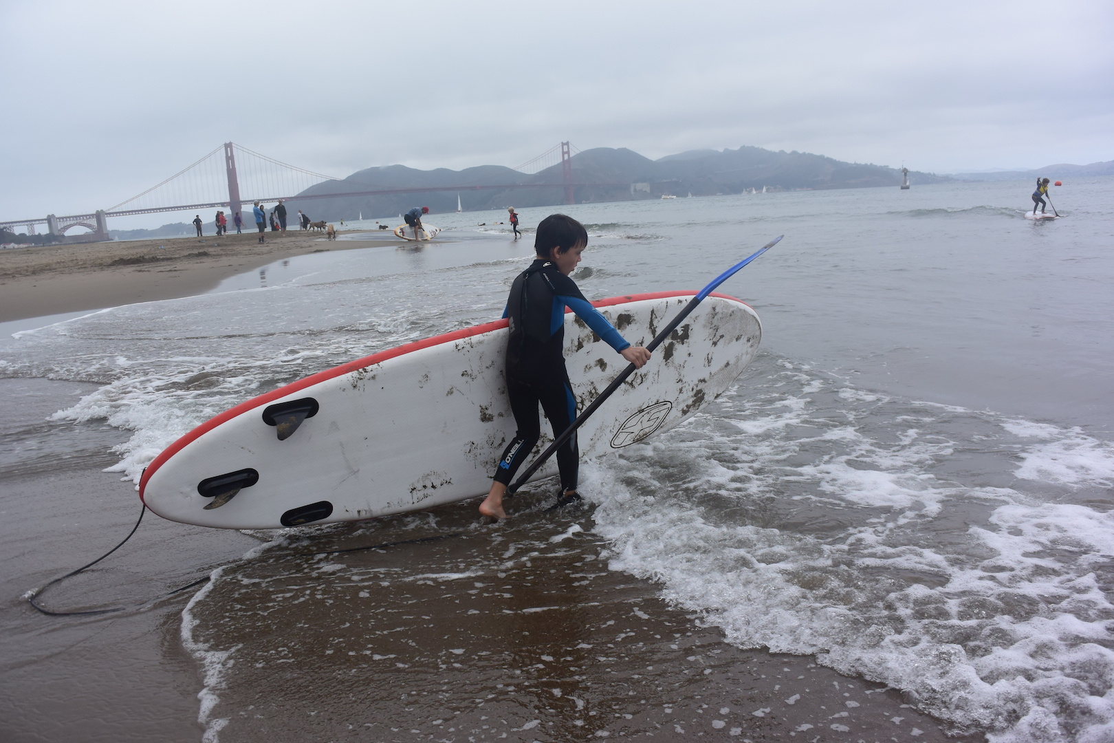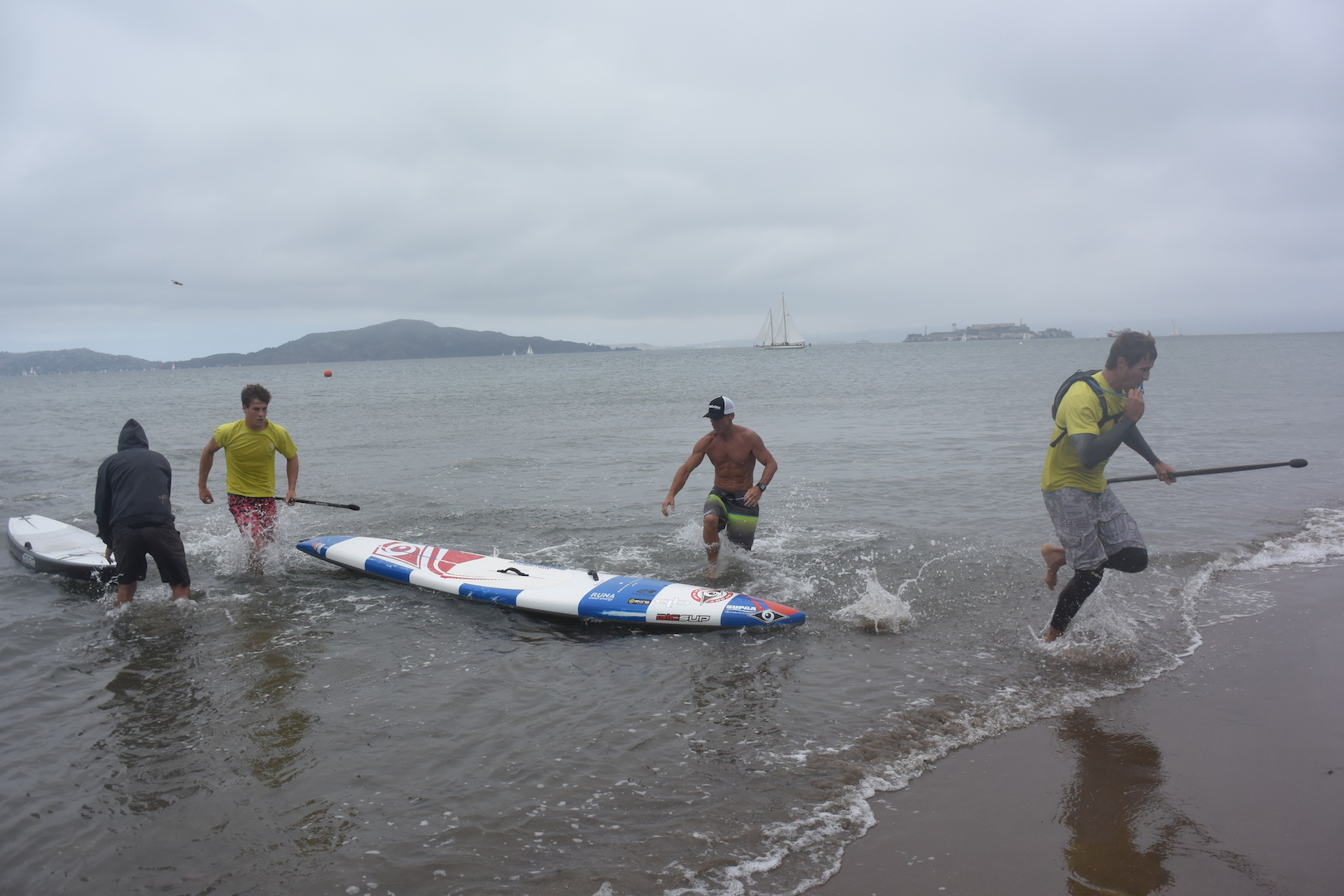 The long distance race saw the participants turn around Alcatraz and the GG south tower, with plenty of strong current to go against. Not your typical flat and easy race… Day 2 was a very entertaining format, based on the Battle of the Paddle, with riders making 5 rounds close to shore, and force to go back to the beach to turn around a flag. That plus plenty of youngsters playing all day long in the . At some point, I counted 8 kids playing with F-One boards in the small shore break waves. They had a blast.