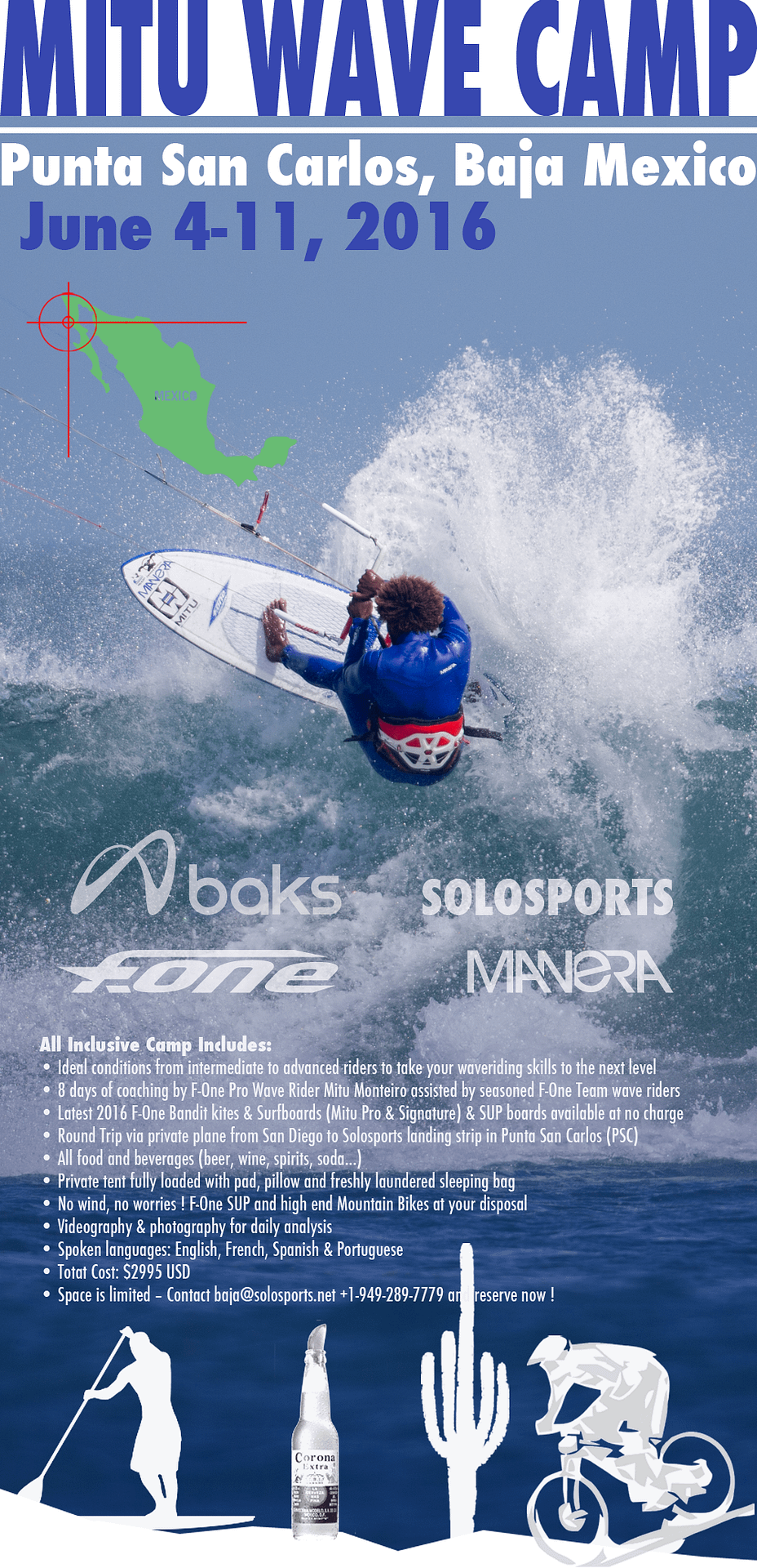 We are stoked to have Mitu back for his annual Wave Camp in Punta San Carlos, Baja California. Dates are June 4-11, Saturday to Saturday.
