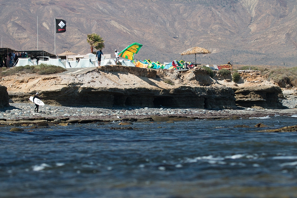 For side-on devotees such as ourselves, we found the first day on the water in Punta San Carlos to be a bit tricky and oftentimes frustrating — especially if you’ve never kited side off conditions; it defiantly takes patience and an adjustment period. Kite placement is key and figuring out how to fly your kite (or not fly it in this case) to avoid getting ripped out of the back of every wave will take a while, but once it clicks, it’s smooth sailing. You’re out on the water until nearly dark if you don’t know how to pace yourself, but it’s all good — a hot shower, a Baja fog (Corona, tequila, lime). . . or two and a delicious and abundant dinner and you’ll be down for the count, tucked away in your sleeping bag and personal tent as the melody of crashing waves against the cliff serenades you to sleep.