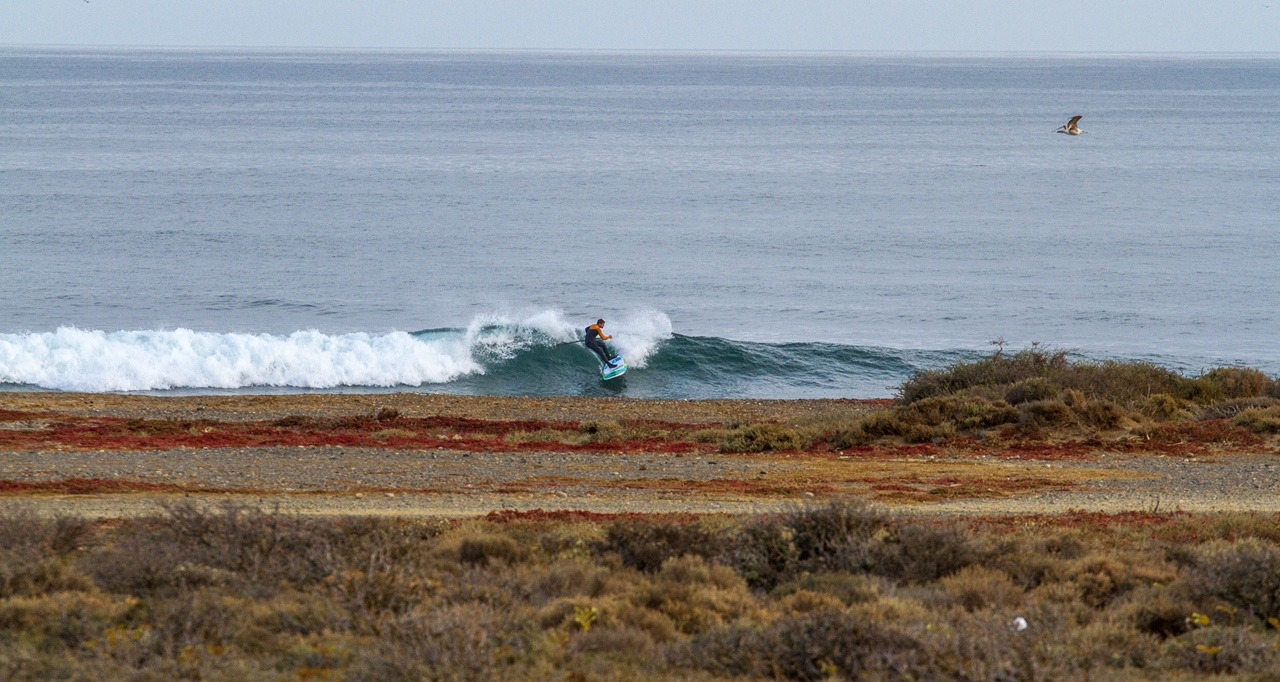 On the days when the wind picked up a little later, Tkb’s editor Brendan Richards got out early and dropped in on some point waves with a strapless Pelican Surf Foil in less than 10mph wind with a Breeze 11m (light wind one strut kite from F-One). Trading tacks with windsurfer/kiter Derry McIntyre, you can see the two had a blast before the day’s stronger wind arrived. Drone footage by Konstantin Othmer.