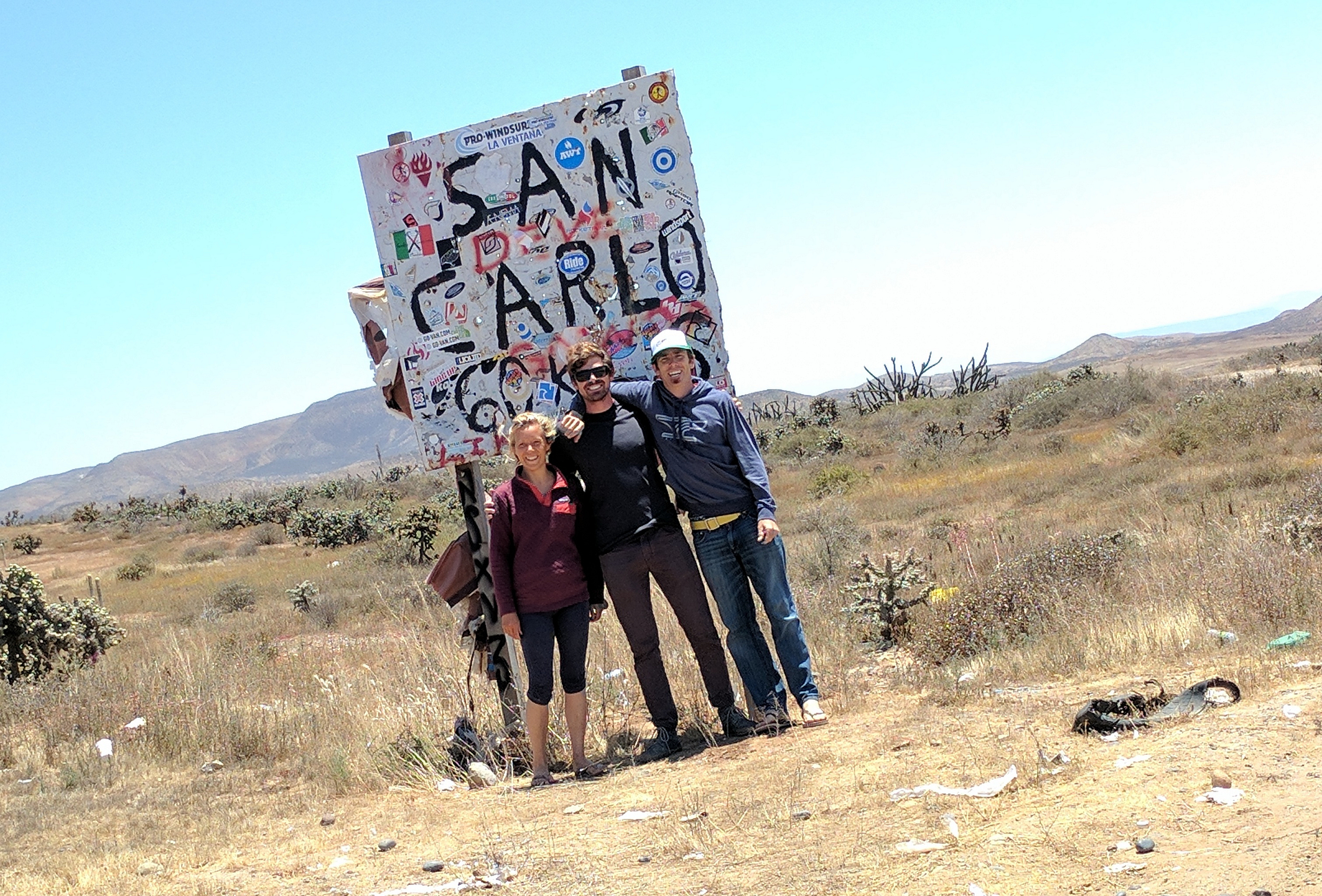 It’s a straight shot, but about 14 hours from Santa Cruz, California; we head south through the Salinas valley, then down highway 5 before hitting LA’s horrific rush hour traffic. Suffocating in metropolis smog, we struggle in bumper to bumper traffic until I5 terminates at the Tijuana boarder. Packed with surfboards and kites, our truck is flagged into secondary, scanned and our passports stamped along with our pre-paid tourist visas (someone did their homework). Following the wall to avoid downtown TJ at all cost, we hit the toll roads and then take turns negotiating the remaining seven hour drive along the Carretera Transpeninsular (“wider than ever” says the know it all baja verteran in the car in a reminiscent and mournful tone). We pass some of Baja’s most notable surf breaks, through rich and fertile valleys and dusty Big Ag towns. Our biggest hold up turns out to be the crowded streets of Ensenada; the Baja 500 is in town and spectators line the streets gawking at everything from rattle trap VW bugs to million dollar trophy trucks. Two military checkpoints later, both of which we are summarily waved on without investigation, then Mexi 1 takes its turn inland towards Catavina and we dodge off, air down and pose in front of the Punta San Carlos sign; draped with a battered, weather-beaten kite, the sign confirms our suspicion that we’re close[r] to our destination. Even with soft tires, it’s two more hours down a dirt track slated with Cardons and Cirios resembling something out a a Dr. Sueus book. Every rut a close blow to the oilpan or flat tire, we rallied past a goat farm, an abandoned schoolhouse and a brightly colored fish camp before we hit the ocean.