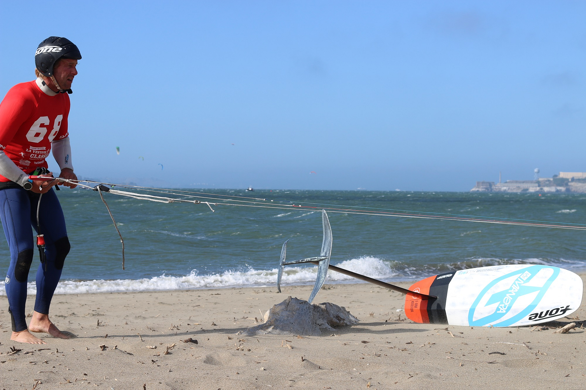 One of the windiest race nights yet, Thursday, June 29th, 2017 was filled with wild conditions, high speed racing and a few massive blow-outs. Not as many competitors as previous weeks due to conditions but the stoke level amongst racers was at an all-time high. Tide was ebbing and wind was gusting over 30kts making for some insane fast downwind runs by all racers especially Johnny Heineken!
