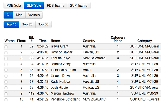 The conditions this year were the fastest I’ve ever seen in my 4 years of racing the M2O, but china wall and the headwind at the end were also the most challenging I have ever seen in my 4 years as well. The tradewinds had been blowing strong for several days leading up to race and were already blowing consistently around 20mph by the 8am start. The wind gradually increased throughout the race creating some insane conditions. I crossed the 16 mile mark at 2 hours 3 minutes so at that time my pace was putting me on the finish line well ahead of the stock sup course record set by Kai Lenny, but as expected my average pace started to drop around mile 26 due to a strong tidal current running against us, the gradient of a strong current running against a strong trade wind made the backwash and surges off china walls really challenging, even though I managed to stay on my feet through the whole leg around China Wall it was so hard to get the board gliding on any bumps against that current. I usually like the rough water on china walls but on Sunday I was really looking forward to pulling into Maunaloa Bay (Hawaii kai) and finishing the last 1.5 mile upwind stretch. Even though I caught and connected waves on almost every little part of the reef on the way into the finish line, the head wind almost beat me in the last 1.5 miles and I ended up off the board about 6 times in that last 1.5 mile stretch, but I managed to just outpower that head wind long enough to finish at 4:36:45.