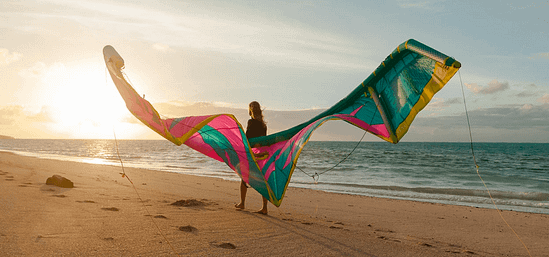 The trick is to place the kite in the right spot to balance the power and pull precisely, you need to do this across the entire wind range of the kite, so the pull is uniform, from underpowered to overpowered. Keeping the profile stable when the kite is fully depowered is really important in order to maintain this sweet spot in the wind window.