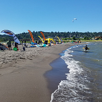 For readers not familiar with hood river, can you tell the best seasons to go kiting or foiling, what type of conditions to expect, the spots to hit? Hood River is on the west side of the USA but 3 hours inland from the coast. You fly to Portland and drive just 1 hour to get to Hood River. It is a mecca for sports junkies. The area is called the Gorge since it is a long deep canyon which the sea breezes come inland through. These breezes are accelerated by the hot desert to our east. During our peak season from June to September the desert is hot enough that we only use kites from 5-10m2. It is normally windy every day. We have a good flat-water site with a big safe launch and if you kite upwind you can get into 4-10 foot tall waves as well. Downwind sessions from Viento to Hood River are 7 miles (10km) and through the most incredible scenery, it’s a must-do.