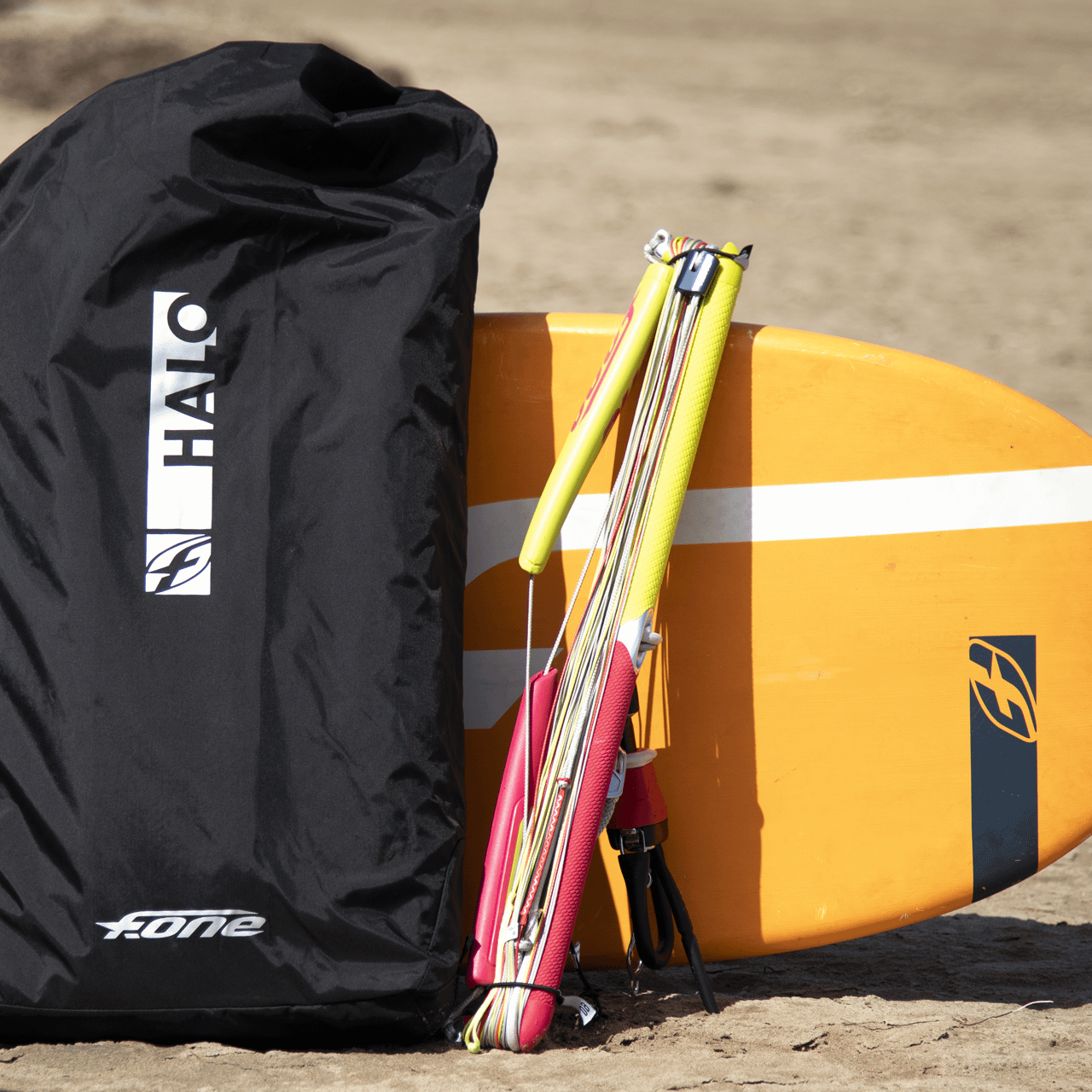 The F-ONE HALO is a ram-air kite designed to enjoy the pure feeling of flying a kite in all conditions and on all terrain. Whether you are at the beach going for a freeride lightwind session, a ride on the slopes or on a mountain board, the HALO is a sporty kite which is rewarding to fly.