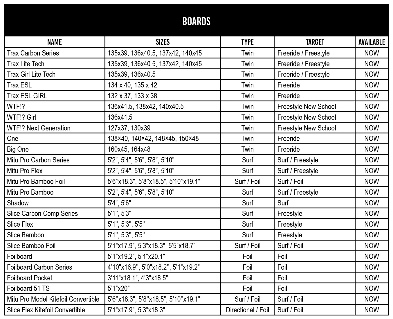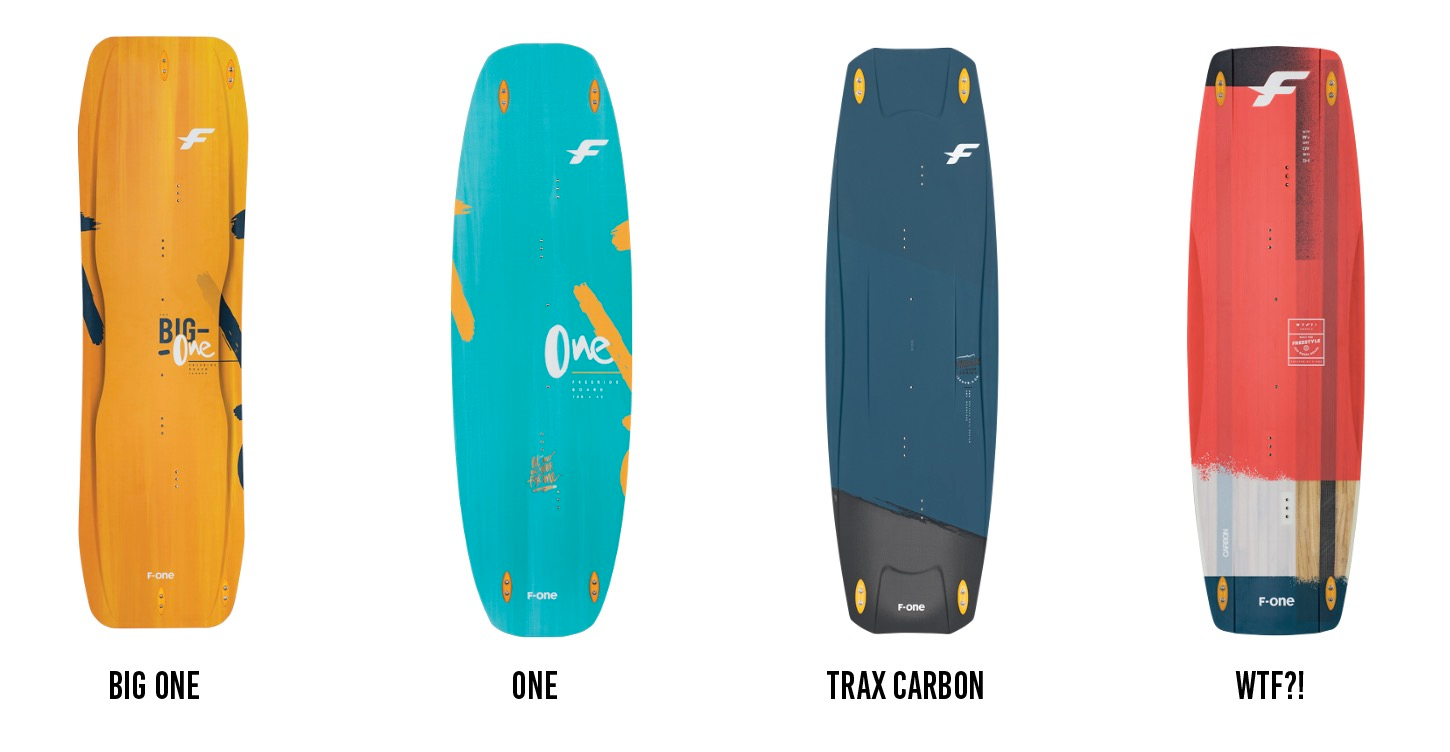 F-One twin tip range has everything to fit every rider’s needs. From performance boards to beginners’ boards, our twin tips are also designed to be pretty versatile. Our Trax range of boards offers our acclaimed Trax feel, but in different constructions that make performance and comfort accessible to every type of rider. We have upgraded our WTF!? board with carbon tapes to add stiffness to the board and increase its explosive pop. The brand new One range of twin tips are ideal for all beginners and freeriders, and the new Big One is the ultimate twin tip for light wind sessions.