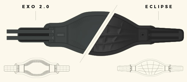 The EXO uses an elastic waistbelt, which is more adaptable and flexible.