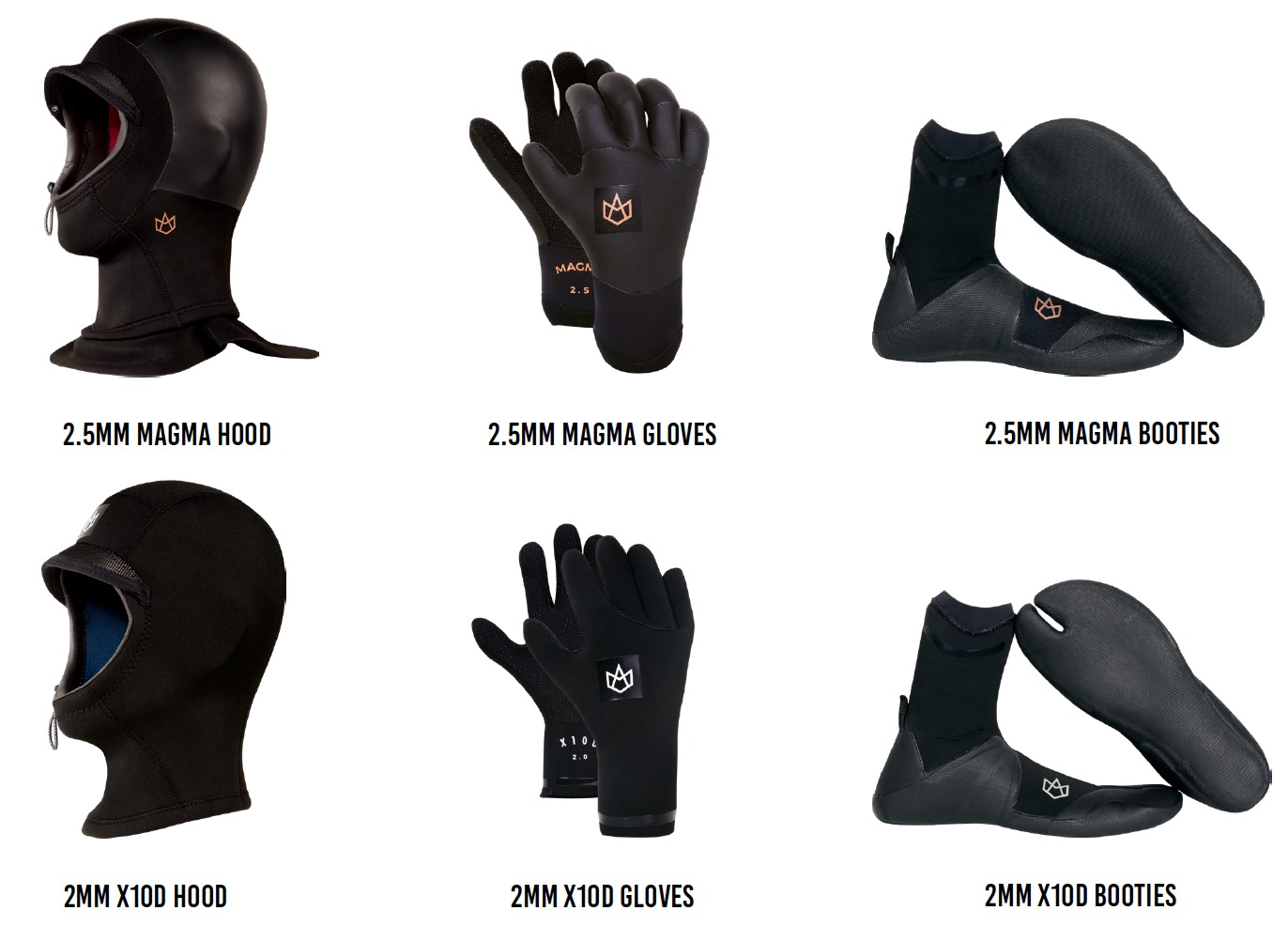 We have worked a lot on other neoprene accessories. As cold-water lovers, we know that your head, hands and feet are as (if not more) important to protect as your body. We offer two models of hoods, gloves and boots (Magma and X10D).