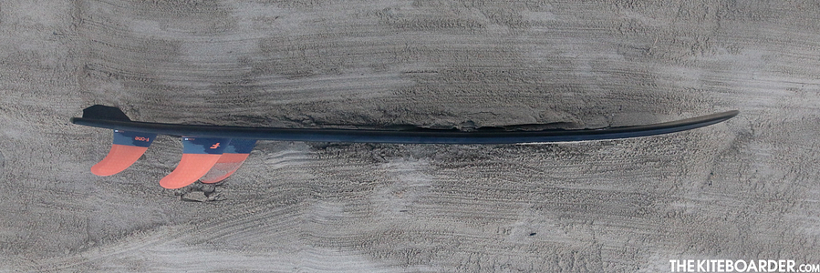 From the second you pick up the Magnet Carbon in hand it is obvious that this board is purpose built for maximizing your strapless freestyle pleasure. The Magnet Carbon features super thin construction that looks like a hybrid between a twin tip and a surfboard, but the weight in hand is so clearly featherweight that you know there’s some serious high tech carbon holding this thing together. The Magnet comes with Future fin boxes and has a channeled, double concave bottom with an exaggerated spine down its center; the rails look fairly straight under your front foot, boxy nose and tail hips. The board’s mid-section outline is indented with grab rails for tricks. The deckpad runs ¾ length with a soft corduroy feel, a kick on the tail and a raised bump on the front to keep your feet on the board. The board skips straps inserts, one of the ways it arrives at its mind-blowing light weight.