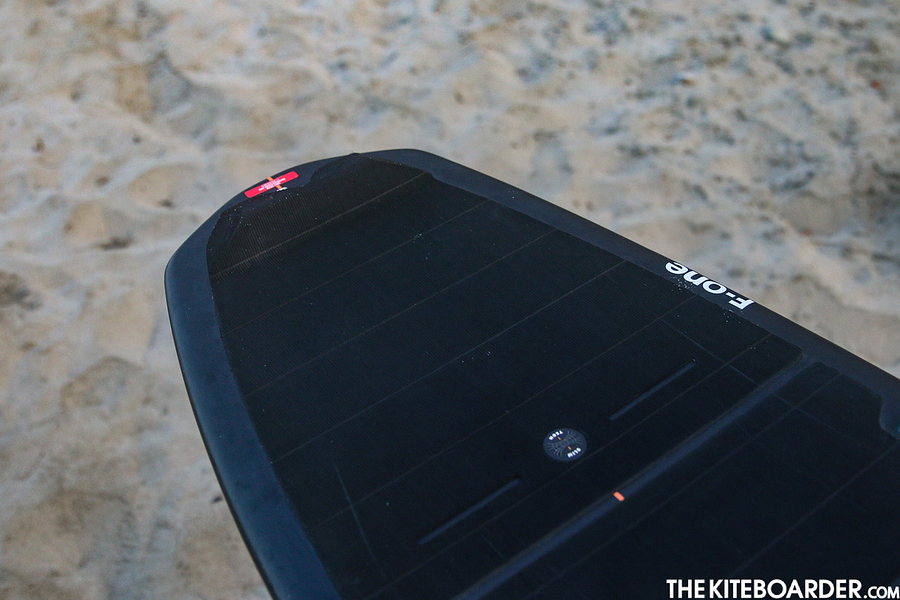 When you combine the low weight with the wide and boxy surface area of the board you get a design that is purpose-built to levitate to your feet during airs. As you head out on your first tack you will feel the board reacting to every piece of chop with the tail template and rocker seeming to want to launch off even the smallest ripple. The Magnet feels super poppy and ready to make just about anything a ramp. On hard upwind slogs, the light weight and rail template gives the board a little bit of chatter as it cuts through the chop, but with its thin straight rails and extra channeling on the bottom, it is easy to control and efficient through the water. In terms of launching airs, the Magnet’s incredibly low weight helps with the release—as you load and release the edge, the board accelerates effortlessly with you into the air where technique and wind will help you stick the biggest multi-rotational jumps. If you were doing single front rolls before, with the Magnet you’ll be doing double fronts. The side question is how does a strapless board do in the surf? The tail doesn’t have that much grip and its rocker isn’t built for seamless transitions between bottom turns, pivots in the pocket and slashes off the lip, so the Magnet is not as fluid as a traditional surfboard. It’s not that you can’t have fun in the surf with this board, but you will have to pay a bit more attention to rail control— it’s just a bit more technical and not its strong suit. The Magnet is a piece of technology that is designed to push strapless freestyle evolution and give you the tools to reach the next level.