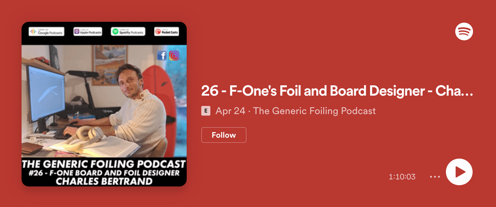 This week on the Generic Foiling Podcast, Liam & Freedie are joined by Charles Bertrand, a naval architect from the F-ONE foil and board design team.
