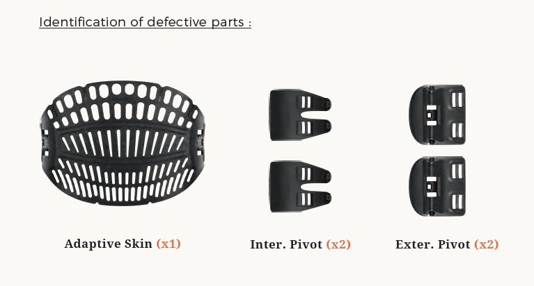 The three structural parts of ADAPTIVE SKIN, INTERNAL PIVOT and EXTERNAL PIVOT, have been redesigned to offer much greater strength and durability.