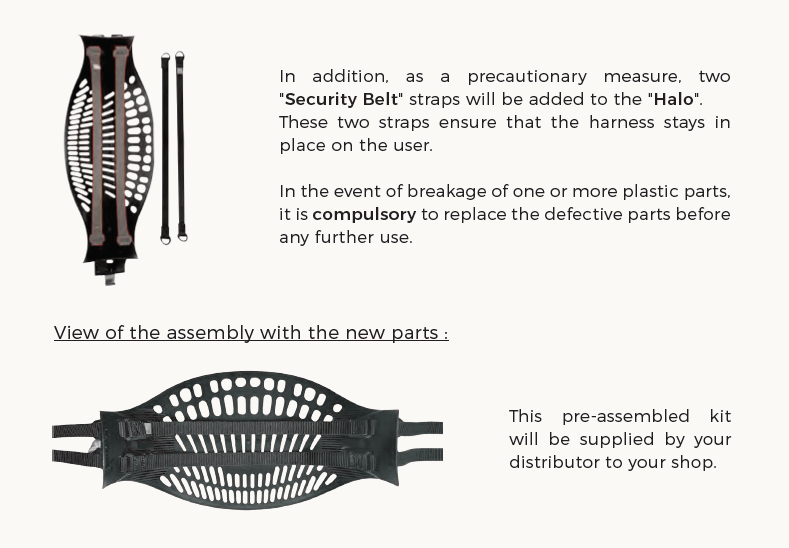 As part of our ongoing monitoring of the quality and conformity of our products, we have detected that certain parts of the HALO Harness could present a conformity defect.